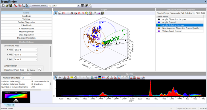 Trendfinder 採用 PCA 主成分分析 技術,讓使用者可直接於熟悉的KnowItAll 介面中,快速找出資料集中隱藏的趨勢、群組、異常值與結構特徵。